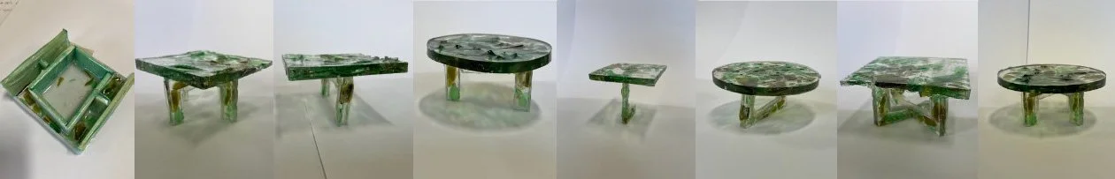 Seaguri is a small side table developed as part of a design exploration—an opportunity to experiment with new materials and processes. Birthed from being drawn to the beauty of sea-glass found whilst on a beach in Greece, Seaguri manifested this in a simple intention: to create a functional piece of furniture that was also able to communicate a deeper narrative about material transformation and value.